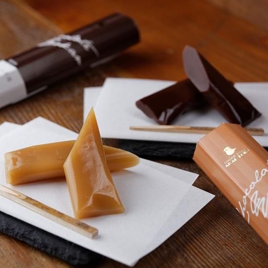 ゴールドチョコレート羊羹は、絶妙なバランスの塩キャラメル味のチョコレートを使用。