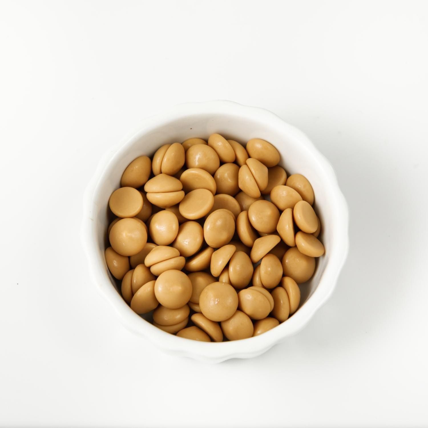 暖かな薄い琥珀色が特徴のキャラメル風味のチョコレート。トフィー、バター、クリームが香り立ち、わずかな塩をきかせたバランスのよいチョコレートです。