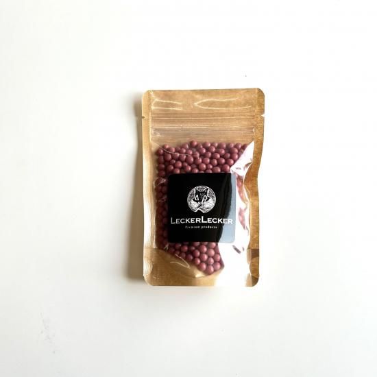 サクサクとした触感のシリアルをチョコレートでコーティングした、光沢のあるパール型ルビーチョコ。